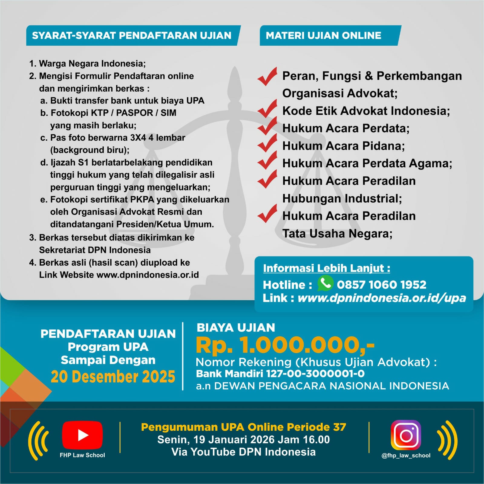 Jadwal Ujian Profesi Advokat (UPA) Online Periode 37 pada :