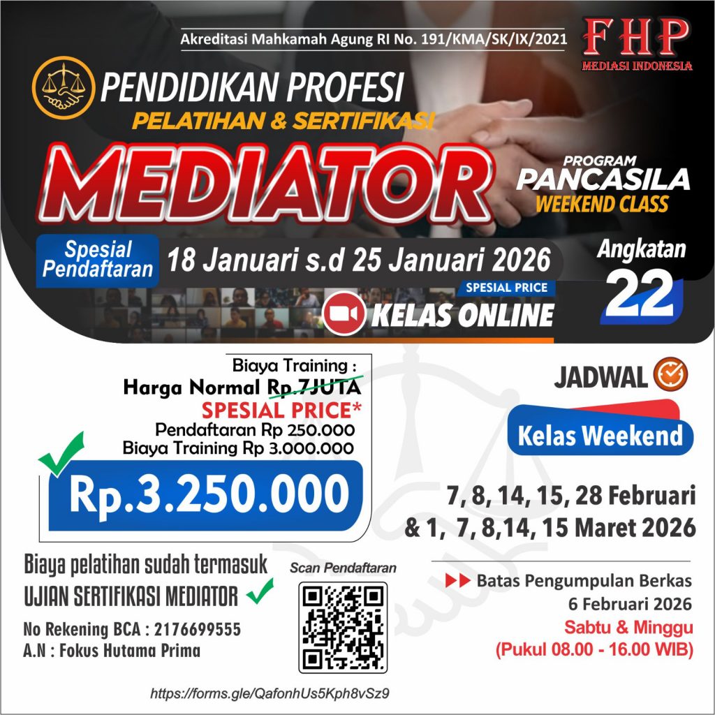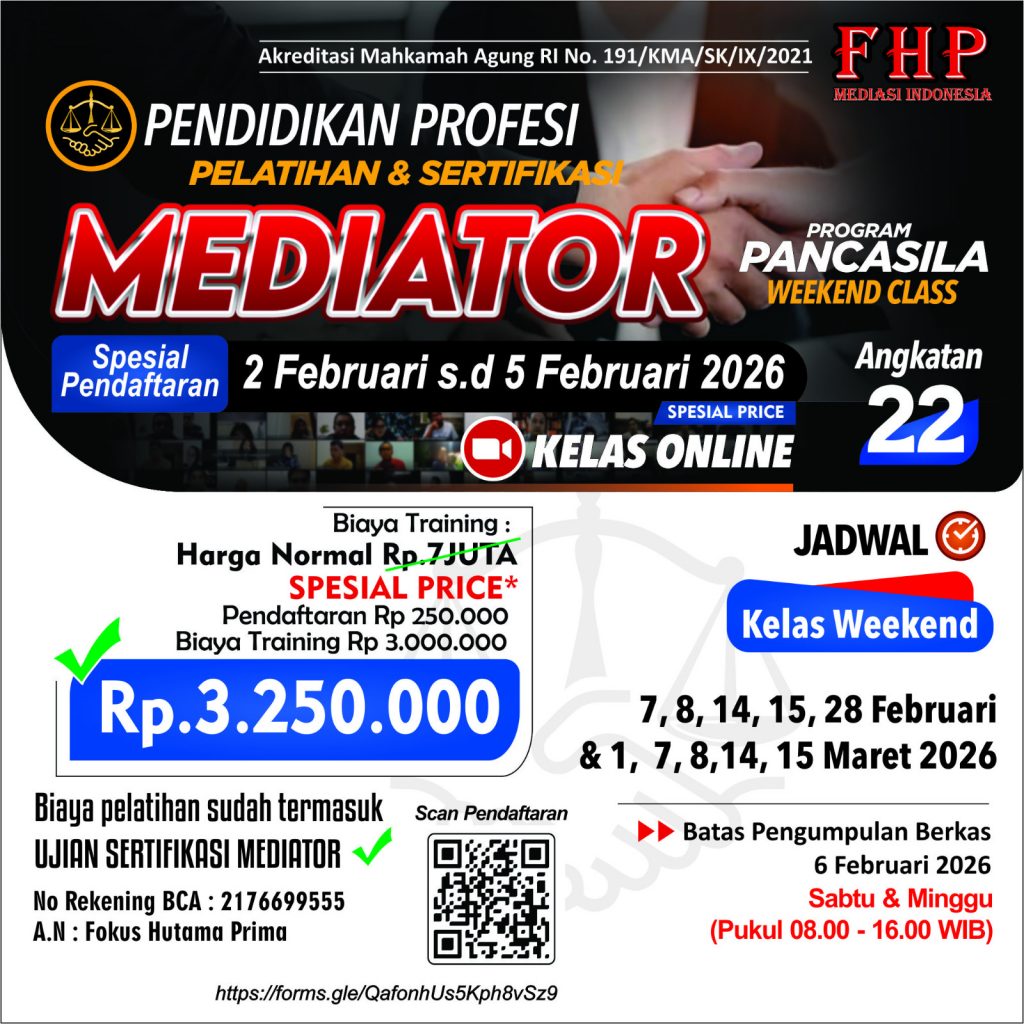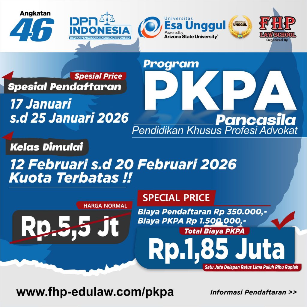 Pendaftaran PKPA sudah dibuka, info detail Pendaftaran PKPA PANCASILA dengan Biaya Spesial PKPA Rp 1.850.000,- melalui