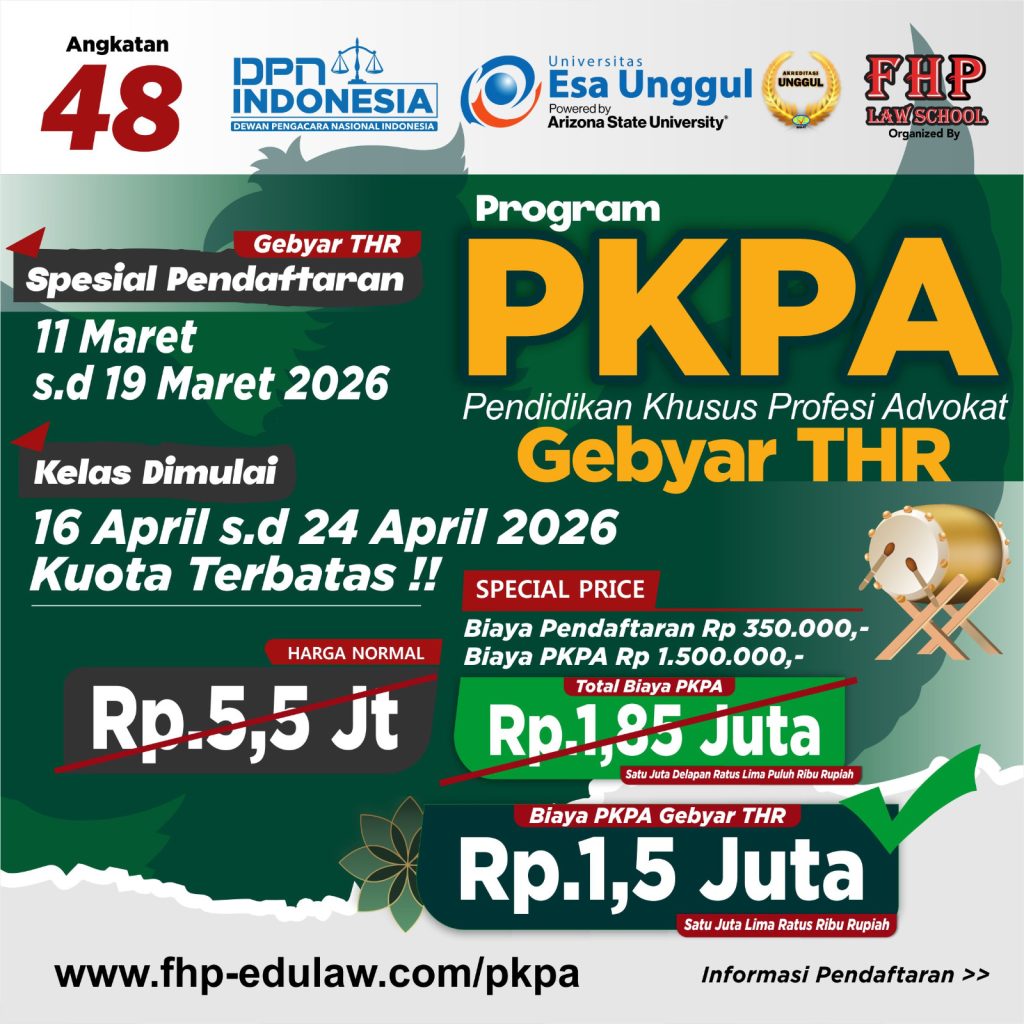 Pendaftaran PKPA sudah dibuka, info detail Pendaftaran PKPA PANCASILA dengan Biaya Spesial PKPA Rp 1.500.000,- melalui