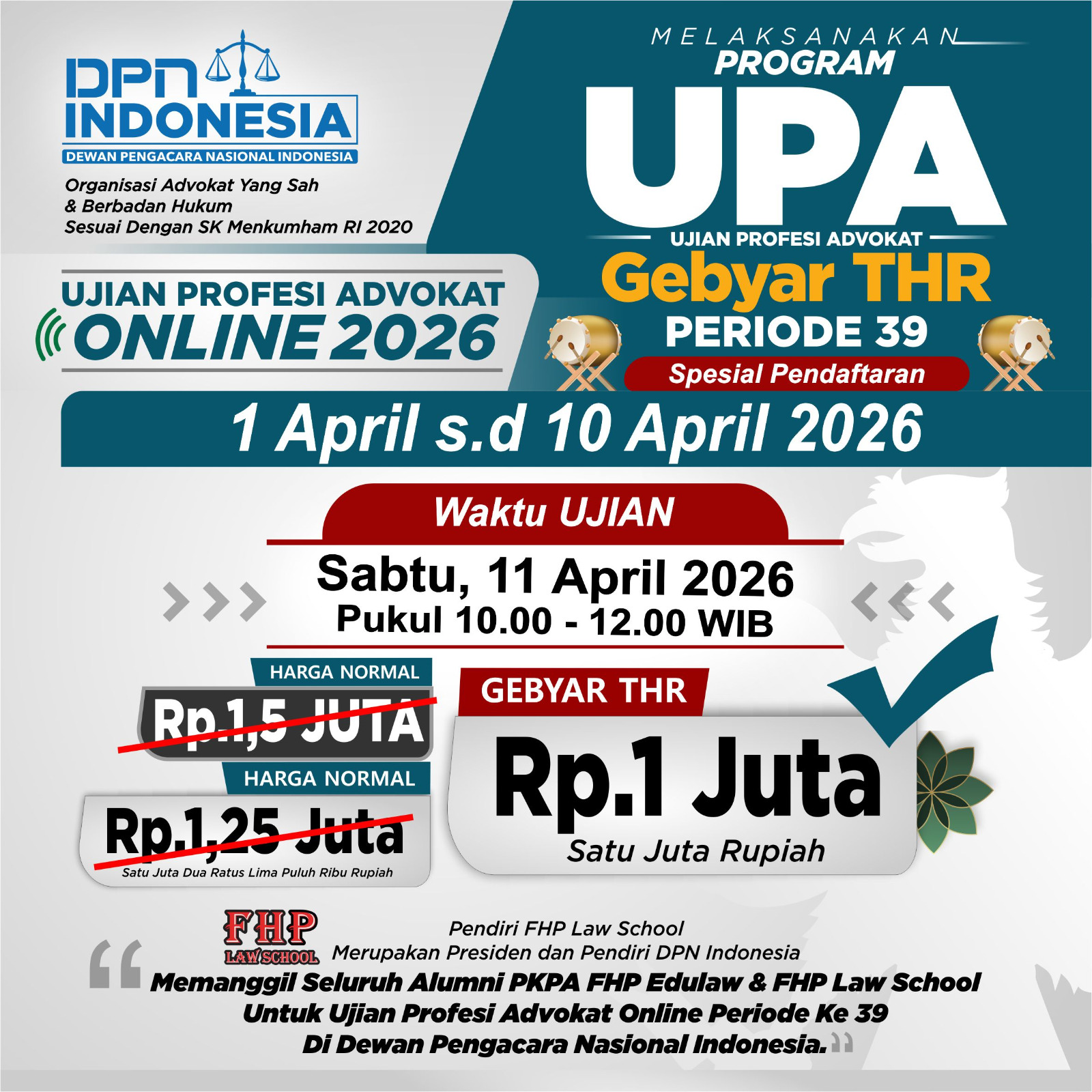 Jadwal Ujian Profesi Advokat (UPA) Online Periode 39 pada :
